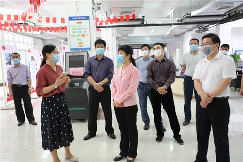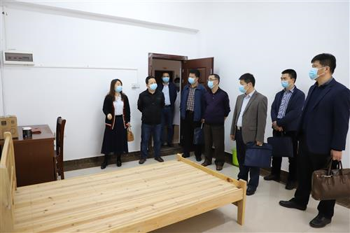 学校副校长邓国彬(右三)检查太阳集团2138疫情防控和春季学期开学准备工作