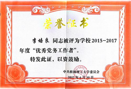分校李培良同志荣获学校2015-2017年度“优秀党务工作