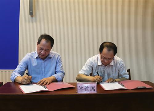 分校校长冯兵(左)与副校长唐承泽现场签订2016年党风廉政责任状