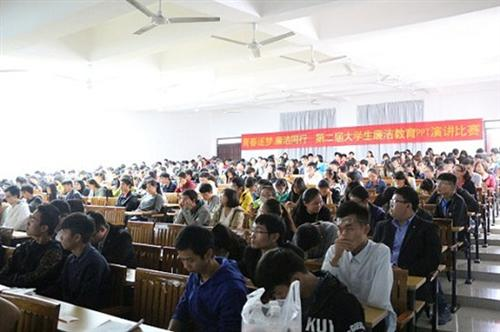 分校纪委委员和校团委书记担任本次比赛评委。飞梦廉洁社团成员,以及2015级各班班长、团支书近400人观看了比赛。