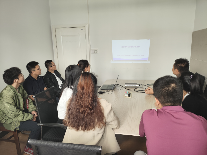为持续完善师德师风建设机制,强化教师精神引领,维护教师心理健康,不断提升教师队伍素质,进一步落实清廉学校建设实施方案要求,近日,学生工作部在行政楼二楼学工会议室开展师德大讲堂活动,集中学习观看了《弘扬陶行知教育思想做新时代“四有”好老师》与《高校教职工心理健康及其维护》视频内容。
