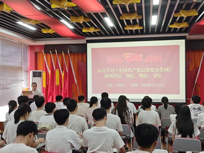 冯良元书记围绕“《条例》的历史沿革及重要意义、主旨要义、主要内容”三个方面详细解读,深刻学习领会《中国共产党纪律处分条例》精神实质、核心要义,强化纪律意识和规矩意识。本次党课运用大量详实的数据和典型的案例,对“六大纪律”进行深刻剖析,结合学生党员个体特征,用身边事教育身边人,引导党员进一步学党纪、知党纪、明党纪、守党纪,为培养具有社会责任感和使命感的新时代青年奠定坚实的思想基础。
