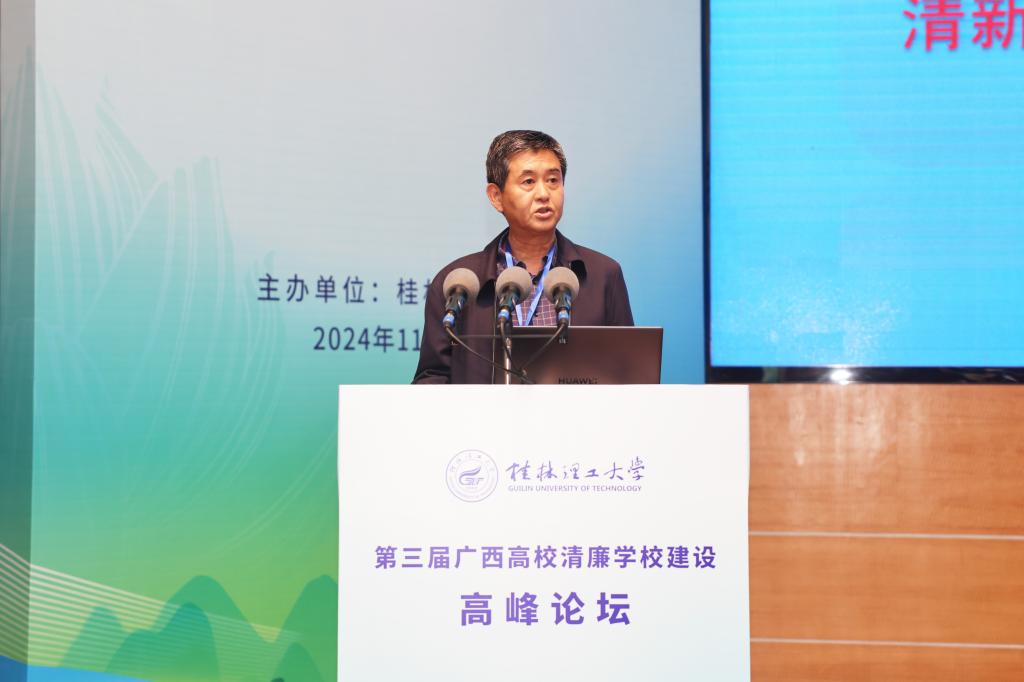 据悉,广西高校清廉学校建设高峰论坛是我校推进“清廉桂工”建设的一种探索与实践,在各兄弟高校的大力支持下,已经成功举办两届。该论坛在区内产生了广泛的社会影响和良好的社会效应,已经成为区内高校交流清廉学校建设理论和实践成果的重要平台。本次论坛的成功举办,对于全面深化清廉学校建设,培育风清气正良好教育生态,赋能教育事业高质量发展具有重要意义。下一步,学校将以高度的政治自觉,持续加强“清廉桂工”建设,深入扎实推进党风廉政建设和反腐败斗争,大力营造风清气正的政治生态和育人环境,推动清廉学校建设提质增效,奋力开创学校各项事业高质量发展新局面。