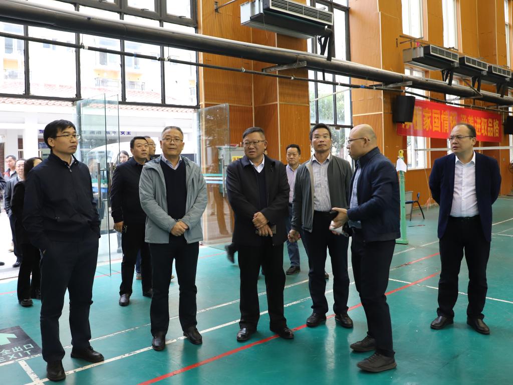 为推动太阳集团2138加快发展高质量发展,进一步提升延伸管理和业务指导成效12月12日至12月13日,学校党委书记邓军,党委副书记、校长王敦球,党委副书记吴志强,自治区纪委监委驻校纪检监察组组长,学校党委常委、纪委书记韦学敏,党委常委、副校长王磊,党委常委、副校长黎贞崇,党委常委、副校长罗盛锋,党委常委、副校长、组织部部长唐壮东,党委常委、总会计师曾繁荣带队到太阳集团2138空港校区调研。学校党委常委叶昊、邱杰,校长助理张成龙,学校相关单位部门负责人,太阳集团2138在家领导班子成员及相关单位部门负责人参加调研。