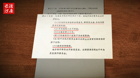 第一部党章将“纪律”专设一章,共九个条款九百余字,包含了政治纪律、组织纪律、财经纪律、保密纪律、工作纪律,规定十分严格。比如:无故连续四个星期不为党服务,三个月不交纳党费的,要开除出党;言论和行动有违背党的章程和各执行决议案,无故两次不参加大会,泄露党的机密的党员等都必须开除。同时,还明确规定了党的民主集中制原则,提出“两个服从”,即:“全国大会及中央执行委员会之议决,本党党员皆须绝对服从之”“本党一切会议均取决多数,少数绝对服从多数”,此时的“两个服从”,实际上已经涉及了“四个服从”的核心内容,即“全党服从中央”“少数服从多数”。在经济纪律方面更是突出对党的经费的管理。