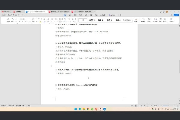 何副院长和李晓英老师指出,人工智能的快速发展使得社会需求对人才要求更高,学科范围更大,需要增加人才的培养深度,新增人工智能相关课程,并强调人工智能除了本地部署还要进行本地化的训练,从而适应本地的教学和科研需要。