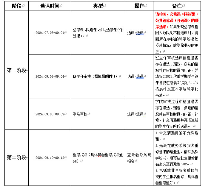 现将2024秋季学期选课相关事项通知如下: