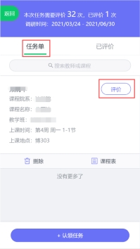 (5)评价者也可不用立即评价,所有认领好的待评课程都会在【任务单】中,可从任务单中进行评价,如下图6所示。