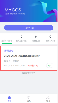 (1)进入移动端登录平台后,首页【我的问卷】,点击具体任务进行评价,如图2所示。