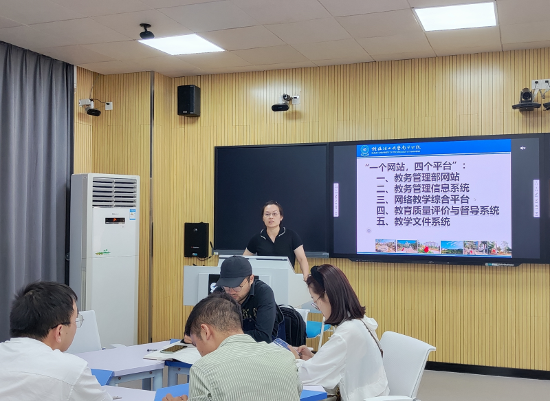 会上,教师教学发展与教学质量监控中心负责人对新老师们的到来表示热烈欢迎,并对新进教师在过去一段时间的教学活动中展示出的教学水平表示肯定,接着对2022年秋季学期新进教师培训内容进行了详细介绍,并结合实际操作为大家展示了教师网校的操作流程。教务管理部副主任通过对教务管理系统、网络教学综合平台等信息业务及管理平台的展示,为新进教师们做好教师、班主任双重角色注入科技力量。图书馆工作人员通过视频会议展示了学校图书馆数字资源利用及信息服务,并对论文发表中的相关问题做了解答。