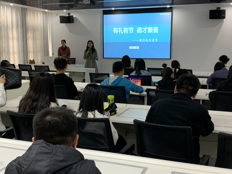 宣传部梁勤部长根据自身多年讲授教学礼仪相关课程及参加各项教学比赛的丰富经验,从教师课堂教学的仪表、语言、表情、举止等方面依次进行了详细讲解。她强调,教师仪表礼仪的要点是要求教师以严谨而规范的仪表,去体现自己积极进取、奋发向上的精神风貌;语言是课堂教学的主要工具,良好的语言修养是教师必备的条件;课堂上师生情感的交流是创造和谐的课堂气氛与良好智力环境的主要因素;教师的仪态被视为其“第二语言”,也叫做“无声语言”,从某种意义上说,绝不亚于人的有声语言所发挥的作用。
