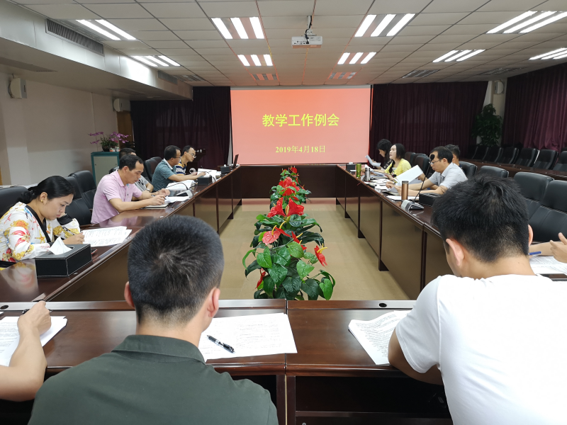 教务管理部负责人针对近期本科毕业实习与毕业设计(论文)第一次中期检查、教育教学改革项目建设(开题论证、中期检查、结题)、2019年广西职业院校技能大赛、3月份顶岗实习管理检查情况、学生外出离队实习隐患排查、实验实训室安全防范、2018年度教学科研工作总结表彰等重点工作情况进行了通报,对下一阶段专升本选拔、本科生转换专业工作、2019年秋课程编排、本科毕业论文(设计)自查查重和第二次中期检查、全国职业院校技能大赛准备工作、实验实训耗材采购、实验室建设项目申报、教师培训等重点任务进行了安排部署。