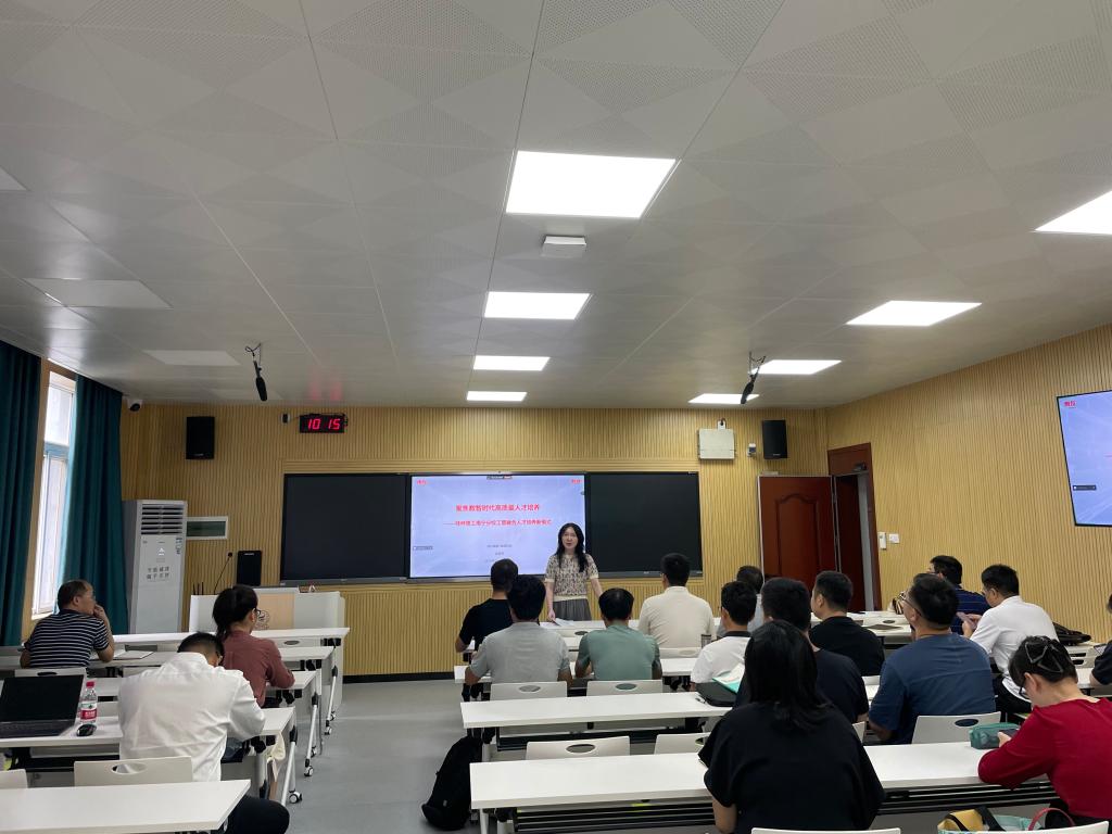 2024年9月24日,新道科技股份有限公司广西分公司(以下简称新道科技)校企合作经理阮璟涵一行5人到太阳集团2138作“数字化转型与工管融合背景下冶金特色人才培养”专题讲座。讲座由太阳集团2138党委委员、副校长马华菊主持。各学院院长、教学副院长、教研室主任和副主任、专业负责人、教师代表等出席报告会。