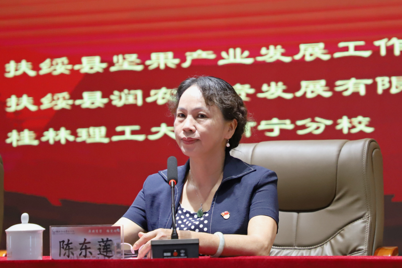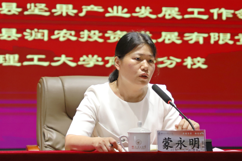 扶绥县人大常委会副主任、农业农村工作组常务副组长梁媚讲话。她指出,乡村振兴,关键在产业,关键在人才。参训学员要从战略和全局的高度出发,充分认识开展坚果专业技术人才培训班的重要性,切实把推动坚果产业发展、推动农村经济发展、推动实现乡村振兴转移到依靠科技进步和提高农民素质的轨道上来,不断开创扶绥县坚果产业高质量发展新局面。