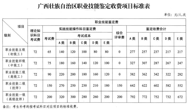 根据《广西壮族自治区职业技能鉴定职业(工种)分类表》、《广西壮族自治区职业技能鉴定收费项目标准表》文件规定,电子商务师四级鉴定费分为:287元/人;理论补考费72元/人 ;技能补考费用215元/人;收费标准如下: