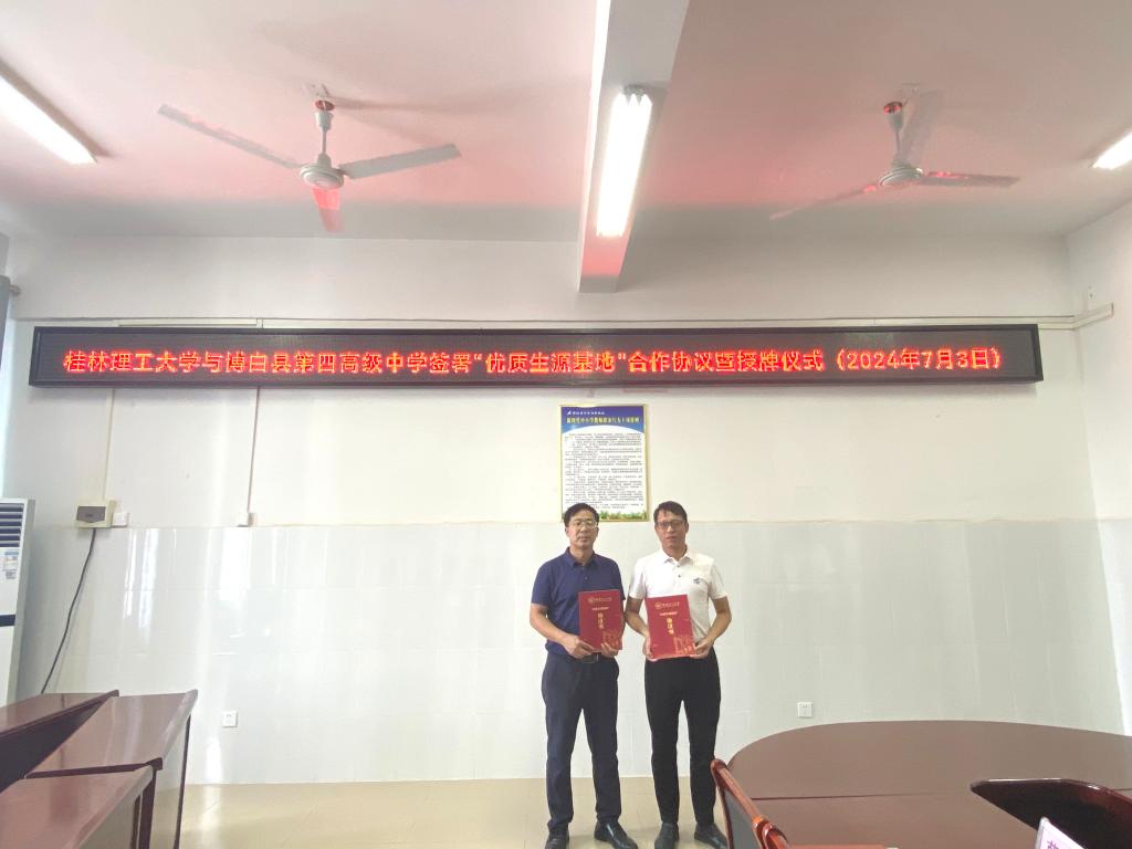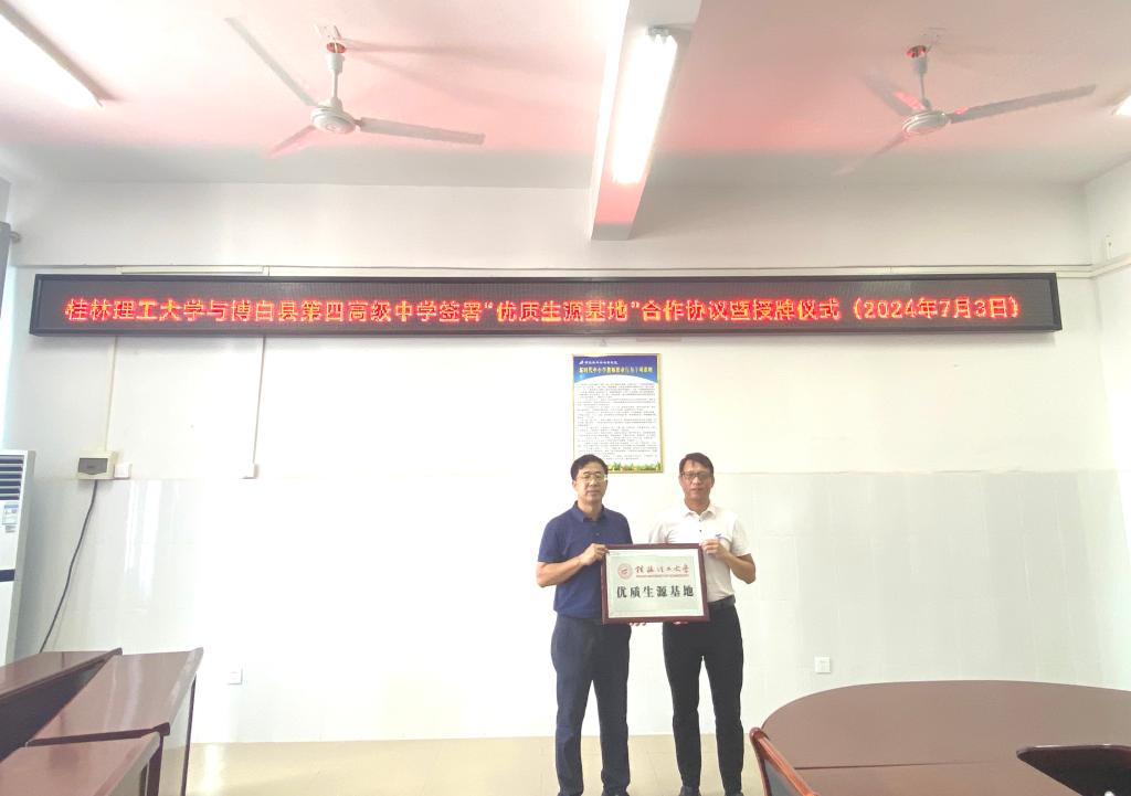 7月3日上午,机械与控制工程学院党委副书记李杰率队赴玉林市博白县第四高级中学开展招生宣介活动,双方共同签署了《太阳集团2138优质生源基地协议书》,并举行“太阳集团2138优质生源基地”授牌仪式。