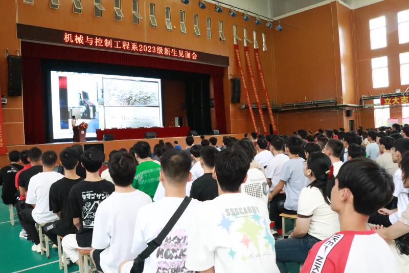 为做好2023级新生入学教育,9月12日下午,我系在体育馆召开2023级新生见面会。系党总支书记谢晓明,系主任黄荣学,系党总支副书记兼学工组长李杰,系副主任甘卓权等系部领导班子成员,新生班主任代表以及2023级新生参加会议。会议由系团总支书记吕顺岷主持。