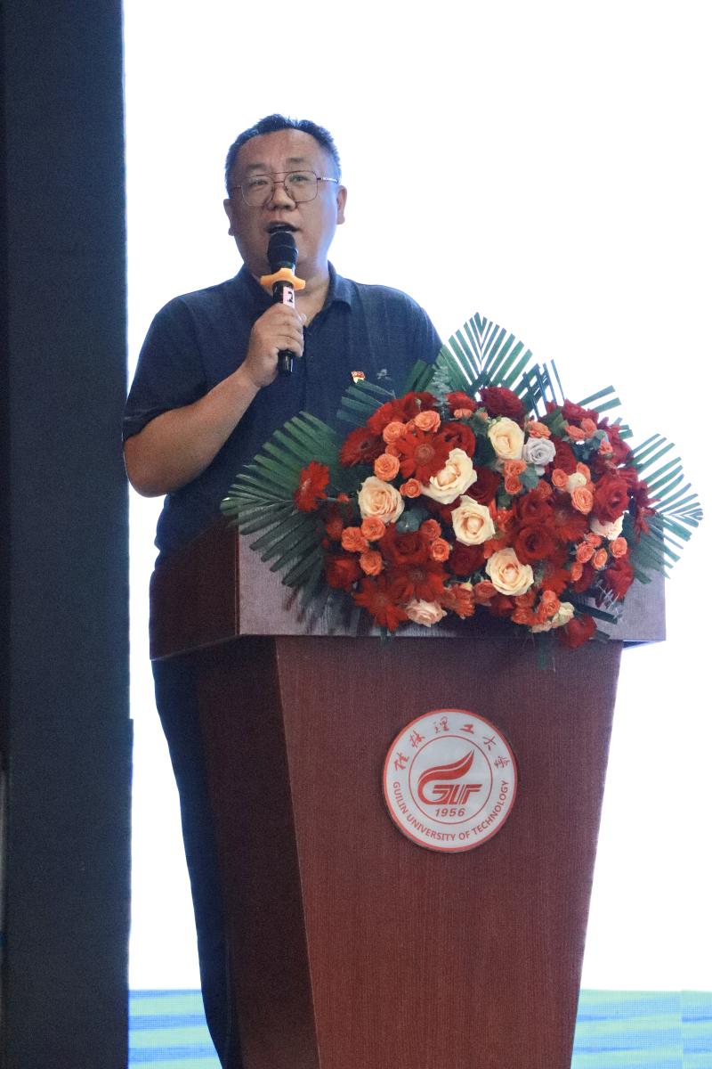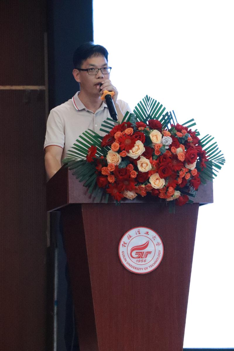 系党总支书记谢晓明发表致辞。他首先代表全系师生对2023级500余名新生的到来,致以热烈的欢迎并寄予殷切希望。他期望同学们在校期间能保持“三要”:一要勤学善思,不负韶华。在校期间,要努力提升自己发现与解决问题的能力;二要修身立志,不负时代。要完善自我,主动求变,成为以赛促学、以学促用的践行者;三要厚植家国情怀,不负人民。要把个人发展和国家命运紧密结合起来,做肩负民族复兴的建设者。同时,他呼吁同学们,要与时代同步伐,与国家共命运,用自己的努力在青春赛道上跑出桂工学子的最好成绩!