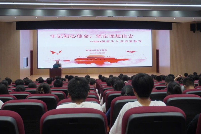 为深化大学生理想信念教育,激发新生的入党热情,引导其积极向党组织靠拢。10月18日晚,我系党总支书记谢晓明在启智楼8408报告厅为2023级新生开展入党启蒙教育专题党课。