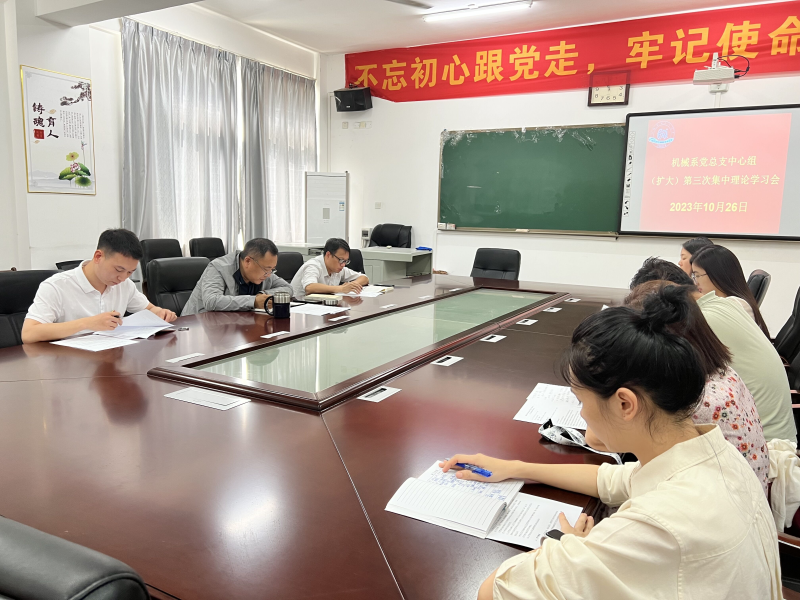 10月26日上午,机械与控制工程系在藏修楼3205会议室召开2023年党总支中心组(扩大)第三次集中理论学习会。系党总支委员、各党支部书记参加,会议由系党总支书记谢晓明主持。