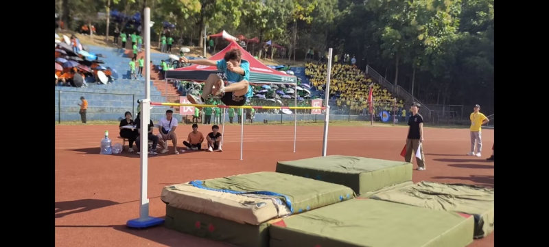 11月4号早上8点半,男子组跳高预决赛即将开始。代表我系参赛的选手有辛天成、张松、梁金柱等8名选手。其中我系运动员梁金柱、尹文聖都取得了1米5的好成绩,我系其他运动员也发挥出色。