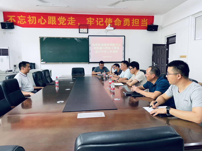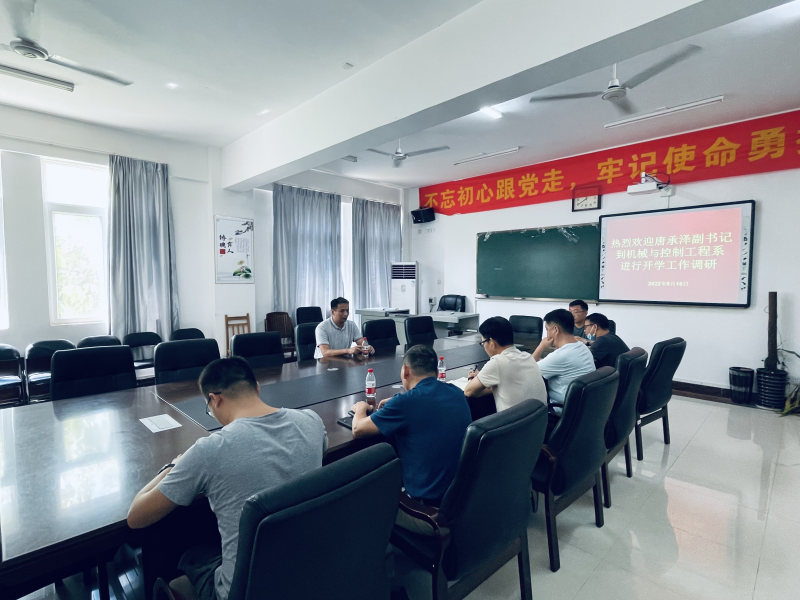 9月16日上午,分校党委副书记唐承泽到机械与控制工程系3205会议室开展开学工作调研座谈会,机械与控制工程系主任黄荣学、副主任甘卓权、党总支书记袁斌、副书记李杰、教师范豪等参与会谈。