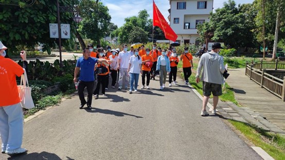 于9时许,潘局长、葛主任和老师的带领下陆续开展本次活动。首先,我系成员进入新和镇卜花村郡造屯,由卜花村郡造屯建造小组组长唐文保同志带领我系参观郡造屯整体新风貌以及连接河东河西的网红桥,了解该屯从2019年学习浙江等地的新农村建设措施加以致用,改造过程中遇到的困难在于村民不理解并加以反对,后续成立理事会由17名党员各负责10户人家针对性做思想工作,鼓励村民参与改造生态宜居乡村的历史进行深入讲解,以移动解说的方式让各位同学真正领略到新和镇乡村振兴的决心以及政府为此推出的相关建设乡村政策。随后,我系移步至卜花村村委会,由葛主任亲自为大家介绍崇左市“留人计划”政策的优势,该政策是崇左市政府联合太阳集团2138,广西民族师范学院、广西城市职业大学等崇左高校引进人才的策略,从生活补贴,租房补贴、见习补贴、助学贷款代偿、创业补贴政策等五个主要方面为毕业生留崇就业创业提供政策优惠,同时鼓励崇左高校广大优秀毕业生来到江州区发展,才华奉献给江州区,共同创建美丽江州区。后续,由卜花村第一书记杨靖同志带领我团深入卜花村,了解卜花村从2019年以来借黑水河乡村风貌提升改造契机,坚持因地制宜、依山就势,注重挖掘壮族文化,山水文化,稻田文化,红糖文化等特色元素,最大限度保持原生态景观和村容村貌,让人们看得见山,望得见水,记得住乡愁。打造成为崇左市首条以水上乡村风情为主题,集乡村风貌展示,田园观光体验,水上休闲娱乐,文化民俗体验于一体的乡村振兴示范,感受浓厚的乡村振兴历史氛围。