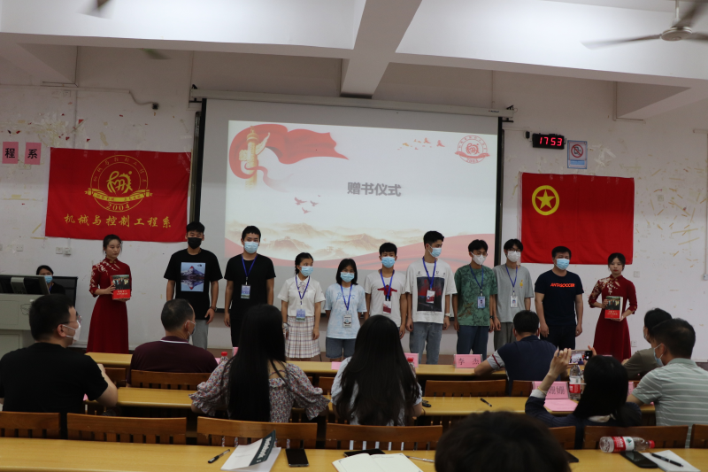 开班仪式上,学生代表岳琪雯从坚定理想信念、树立正确价值观、勇担时代重任三个方面进行汇报。接着,袁斌书记为学生代表赠书,并进行合影留念。随后,由辅导员韦菲菲老师诵读《致学员的一封信》。最后,由系党总支书记袁斌老师进行讲话,袁斌书记从理论学习、加强锻炼、投身实践三个方面表达了对青马班学员的殷切期望,并祝愿此次培训圆满成功。