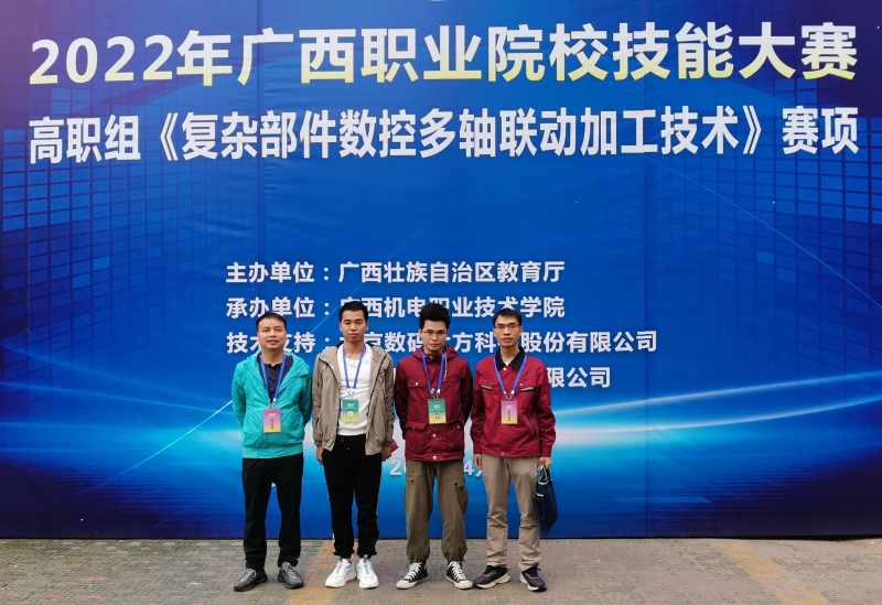 4月17至18日,我系机器人19-1班杨福宁、数控21-2班梁王组成的参赛队在指导老师邓喜飞、奚富由的带领下,前往广西机电职业技术学院参加2022年广西职业院校技能大赛复杂部件数控多轴联动加工技术比赛项目,经过激烈角逐,最终排名第2,获得二等奖的好成绩,并取得参加全国职业院校技能大赛的资格。