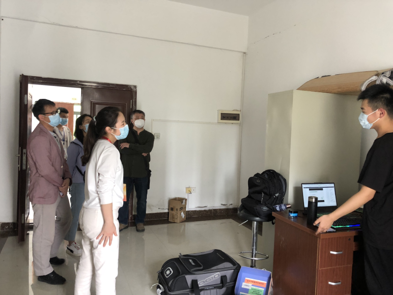 3月16日下午,机械系领导班子成员走访集中隔离居住观察室的学生及老师,缓解他们焦虑的情绪,确保疫情防控工作稳步进行。