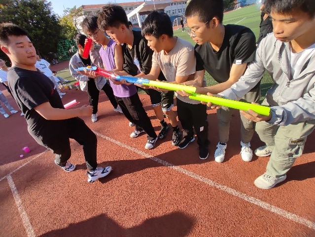 此次活动的项目有:珠行万里、合力建塔、团队构建、“风火轮”、神笔马良以及击鼓颠球等。在团体活动的过程中,同学们积极参与,热情高涨。