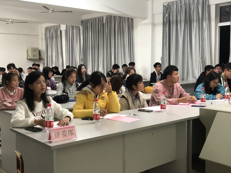 演讲过程中,参赛选手们展示着自己精心制作的PPT作品,进行着激情饱满的演讲。在比赛期间,台下的观众积极与演讲者互动,现场的气氛十分活跃。即使本次比赛是预赛,但我们仍可以看出每个参赛选手对比赛都非常重视,他们以自己的理解向我们介绍了国家宪法,诠释了爱国热情。