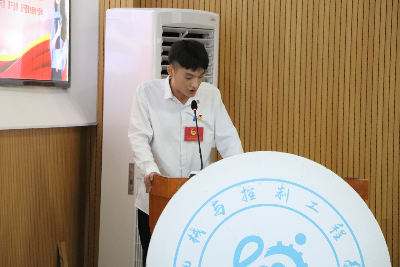 接着,机械系团总支副书记刘腾飞与机械系学生会执行主席谢其业分别进行了机械与控制工程系团总支与学生会工作的报告。刘腾飞同学带领同学们回顾了过去一年里机械系团总支不断完善基层团组织、开展思想教育工作、落实寒暑假实践、坚持思想引领等方面的工作。团总支始终秉持攻坚克难、砥砺奋进的精神,助力同学们成长。他相信,新一届团总支面对的平台会更加宽广,必将为系部的团组织建设谱写新的篇章。