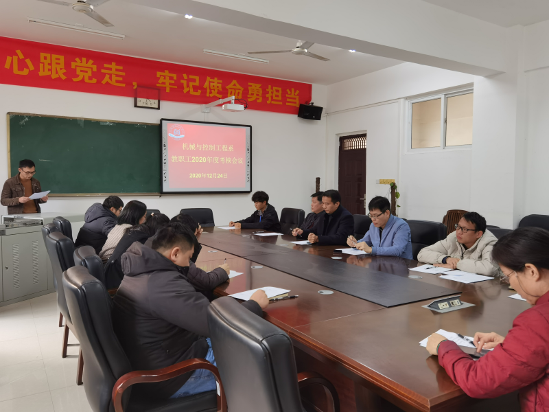 12月24日,机械与控制工程系在3205会议室召开了2020年度教职工考核述职大会,分校党委副书记唐承泽参会并做总结发言,会议由系党总支书记袁斌主持,机械系主任黄荣学、副主任甘卓权、系党总支副书记李杰与会。