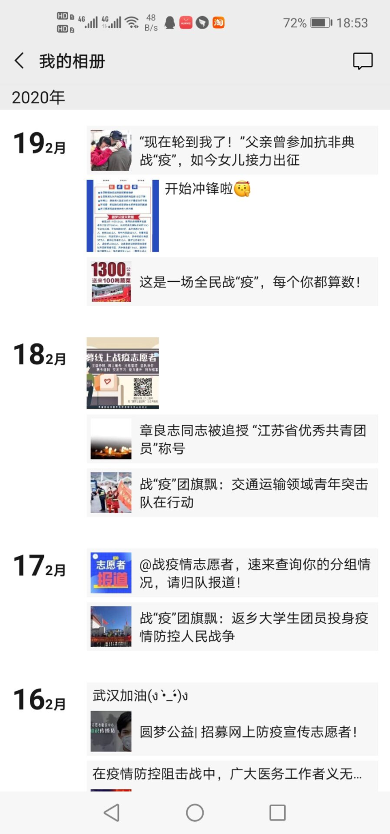 机械19-1班的谢其业来自江苏宿迁。他在2月9日~3月8日参加南京圆梦公益志愿者服务中心的战“疫”网宣活动。担任战“疫”指挥部36组网宣组长,利用微信群开展工作。
