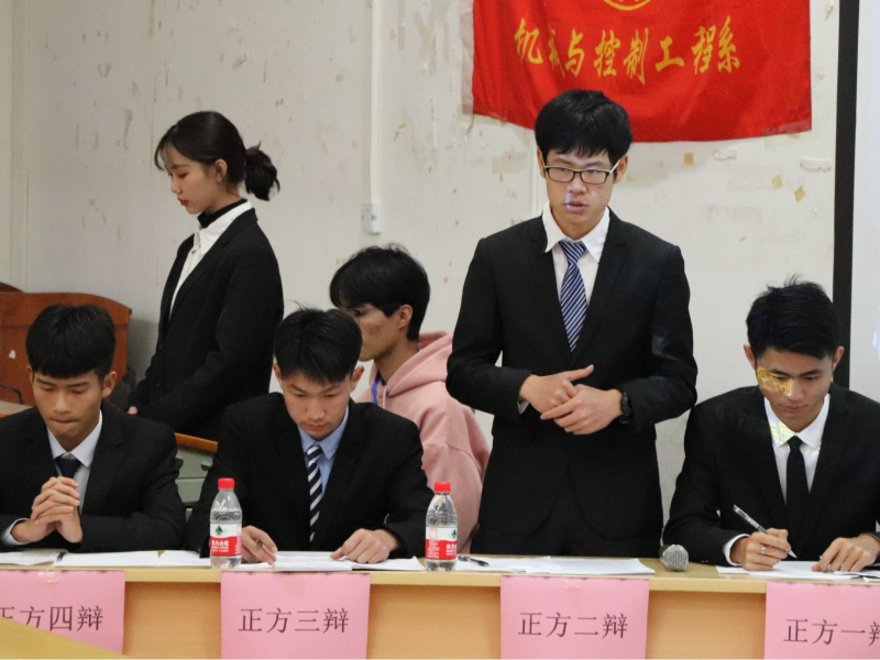 旁征博引,思绪飞扬;雄辩八方,梦想起航。为发掘我系学生自我潜能,提升个人自信,追求进步,锻炼口才,发展自我,充分展现当代大学生的风采风貌,12月19日下午5:30分,我系在启智楼8101举办第十届“星风采”辩论赛季军赛。蒋赐玲老师、易班站长和易班副站长作为到场嘉宾,比赛队伍有来自机电19-本2班的精神小伙队和来自机器人19-1班的雷鸣队,团总支副书记叶香艳、学生会主席刘沛、学生会副主席候瑞敏作为本次比赛评委,此外还有团总支学生会全体成员和各班观众代表。曾影作为本次比赛主持人。