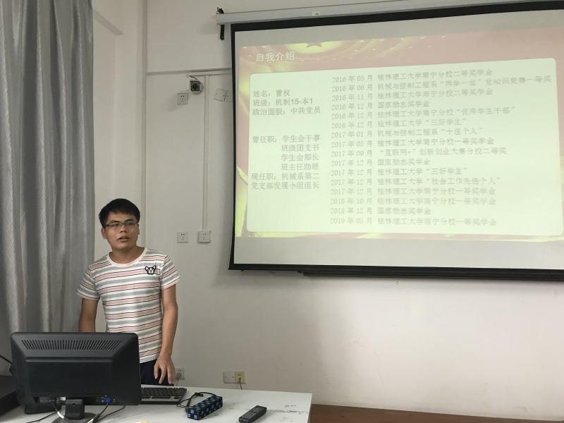6月26日下午,我系在3506室召开了优秀毕业生先进事迹报告会。本次会议由系辅导员蒋赐玲主持,邀请优秀毕业生代表曹权、吴涛、谢媛媛主讲,22期积极分子参与会议。