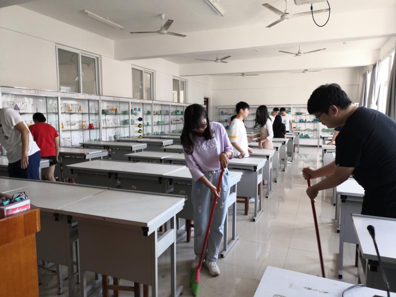 为进一步提高学生社会责任感,增强资助育人成效。我系办公室助理中心组织受资助学生,于2019年6月5日、10日对校园绿化带以及藏修楼教室进行公益清扫活动。