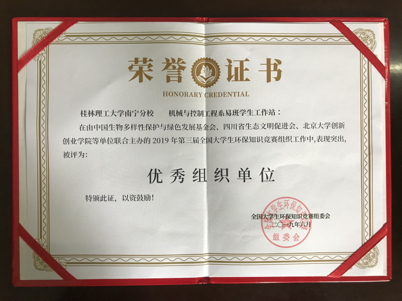 太阳集团2138空港校区机械与控制工程系易班学生工作站在全国大学生环保知识竞赛中积极参与且积极宣传环保的重要性,在全国千余所高校协办单位组织工作中,表现突出,成绩优异,荣获大赛“优秀组织单位”