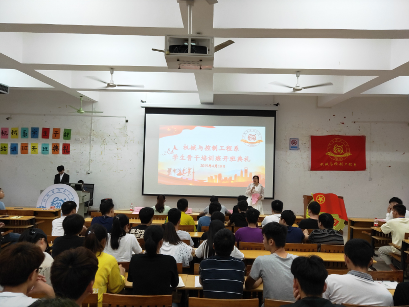 为加强我系学生干部的政治理论学习能力,发挥先锋模范作用,我系于4月18日下午,在八栋启智楼召开学生干部培训班开班典礼及开班第一讲。参加此次会议的有分校团委书记黄薇薇老师、我系党总支副书记兼学工组长李杰老师、我系团总支书记唐淑珍老师、辅导员李肖然、韦选建老师,和我系五大团体全体成员以及18级所有班干。