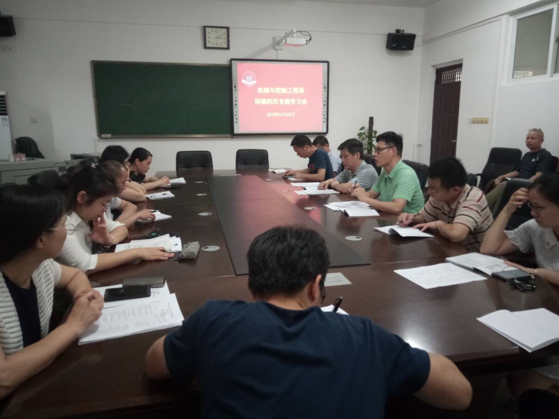 4月23日下午,我系在藏修楼3205会议室召开师德师风专题学习会,系部全体老师参加了此次会议,会议由系党总支书记袁斌主持。