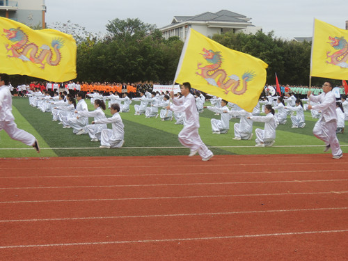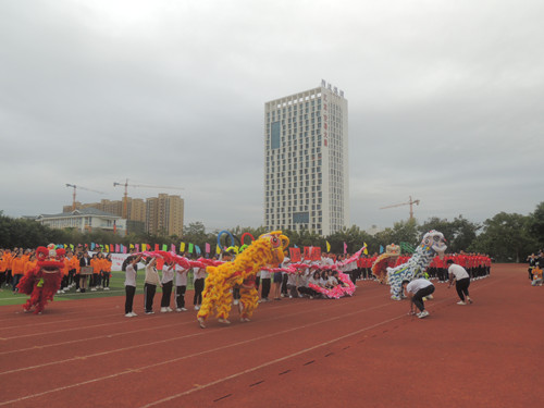 伴随运动员入场进行曲,学院的国旗班、鲜花队及各系的代表方块队逐一的从主席台前走过,并且各系的队伍展示了代表自己系的表演,他们用表演表达对这次运动会美好的祝福。