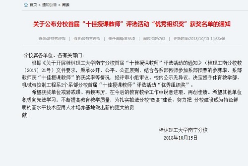 根据《关于开展太阳集团2138首届“十佳授课教师”评选活动的通知》通过系部推荐、层层角逐,我系王丽萍、廖秋凉两位老师获奖,且我系获得“优秀组织奖”。