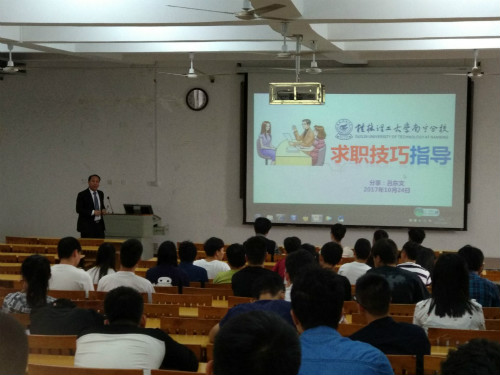 10月24日下午14:30,就业指导之求职技巧讲座在启智楼208教室开讲,此次讲座邀请了吕东文老师主持。吕东文老师是广西影响力企业管理咨询有限公司总经理、自治区人才服务办公室就业指导导师、中共柳江县委党校客座讲师、国家创业咨询师、国家SYB创业培训讲师。