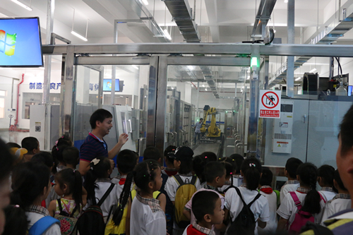 伴随着朝阳,为期半天的学习体验活动开始。首先,我系袁斌书记带领大家来到我系金工实训中心,为小朋友们介绍机械零件的制作过程。随后,袁斌书记和我系实训中心主任詹广平老师带领大家参观我系的数控实训室,为小朋友们认真讲解机器的运作原理以及作用。最后,大家来到我系智能制造工厂,在宽敞明亮的生产车间中,通过我系邓喜飞老师的细致讲解,小朋友们真切的感受到智能机器的运作。整个活动井然有序,小朋友们也在老师们的介绍中表达着自己的各种畅想。