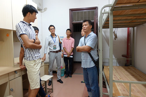晚八点,袁书记一行首先到达男生宿舍进行走访。他们仔细询问了新生对于大学的感受并向他们讲述了自己大学时期的趣事,引来了大家的阵阵欢笑,宿舍内的气氛十分融洽。新生们也都向袁书记介绍了自己的家乡,和大家一起开心的畅聊起来,袁书记对新生表达了殷切的关心,对他们的饮食、住宿等问题都进行了细致的询问,并勉励他们一定要尽快适应自己的大学生活并能够认真对待学习,让他们感受到家庭般的温暖。最后,袁书记对新生们送上了深深的祝福,希望他们顺利地度过大学生涯并有所收获。