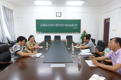 5月19日上午,太阳集团2138机械与控制工程学院李海霞副院长到我系进行交流。我系主任韦余苹和相关教研室主任等参加了座谈会。