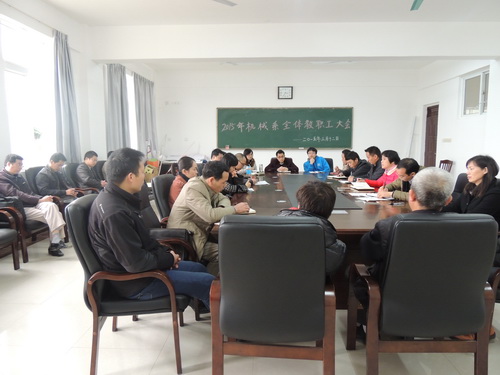 三、严密部署,积极推进本学期各项教学工作。3月12日下午,我系在藏修楼205会议室召开全系教职工大会,刘高鹏副主任对本系的教学工作计划进行具体阐述,韦余苹主任从安全、廉洁和创新等方面提出要求。最后,分管我系工作的唐承泽副院长要求我系抓住专业结构和办学调整的机遇,提高内涵发展,以教学能力提升促进教风、学风的转变。