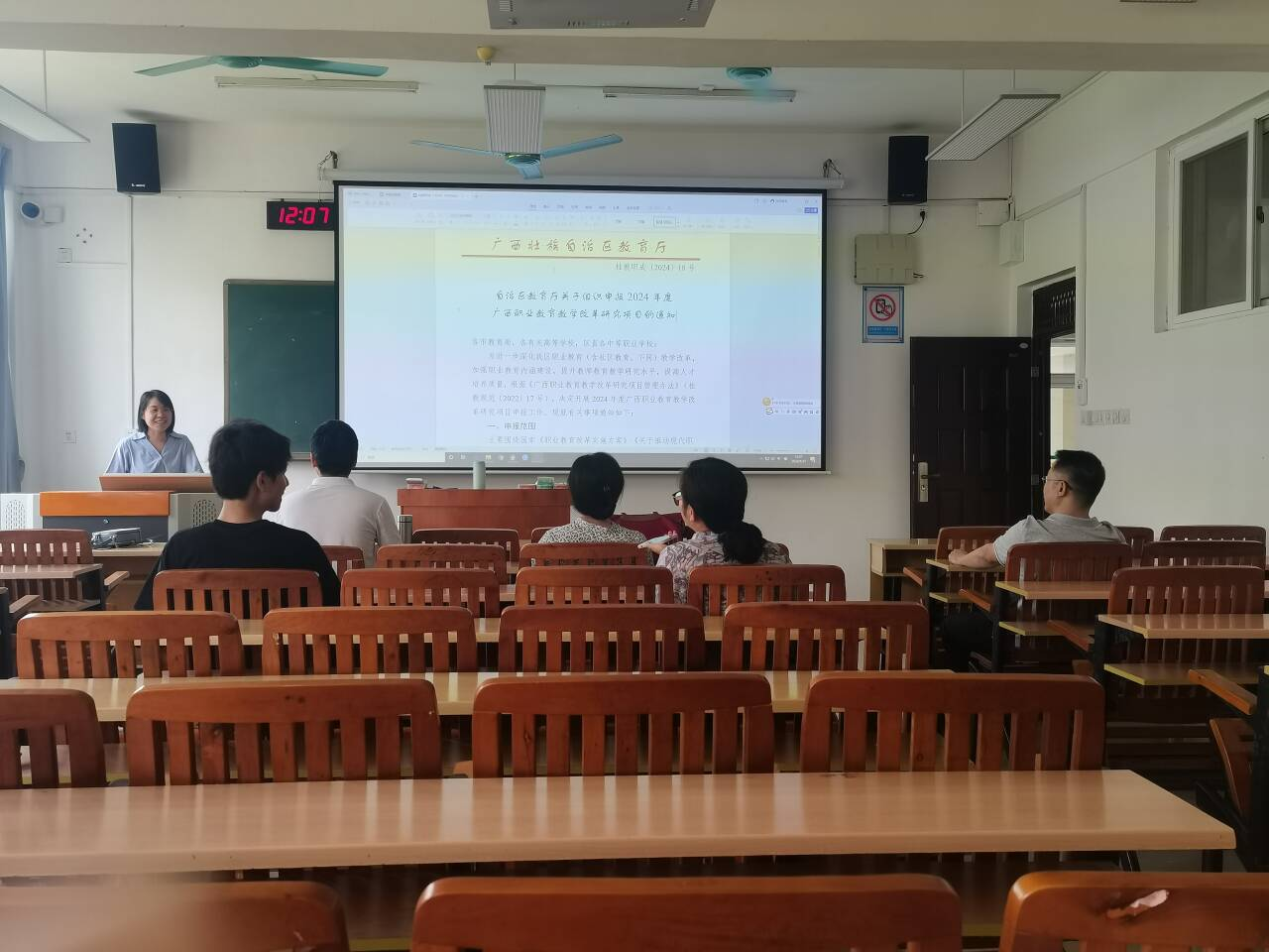 会上,教研室主任赵琳首先组织全体成员认真学习了《2024年广西职业教育教学改革研究项目的通知》具体内容,结合学院下达至教研室的任务指标,号召教研室的成员积极踊跃参与该项申报。随后,王丽萍老师分享了自己申报该项目的具体经验,其他老师也就教育教学改革研究项目的申报工作如何开展发表自己的看法。会上还对《广西教育科学“十四五”规划2024年度教育督导等五个专项课题申报》的相关内容进行研读,以期找到相关切入点为后期开展申报工作提供支撑。