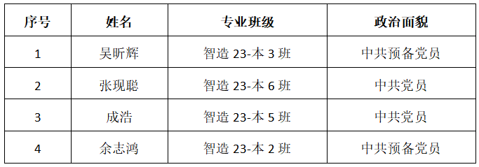 根据《关于公开竞聘机械与控制工程学院团委副书记和学生会主席团成员的通知》要求,经个人申请、资格审核、竞聘面试及综合考核,现将2025年公开竞聘机械与控制工程学院团委副书记、学生会主席团成员名单予以公示。